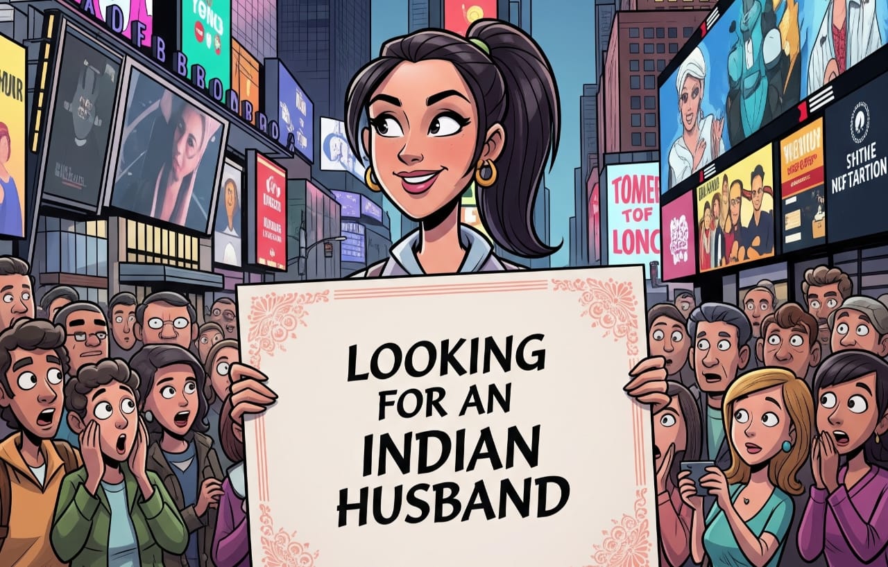 Times Square in New York is known for its diversity and vibrant displays. Recently, it witnessed an unusual scene when an American woman held a placard reading “Looking for an Indian husband.” The act drew attention from passers-by and quickly went viral on social media platforms.