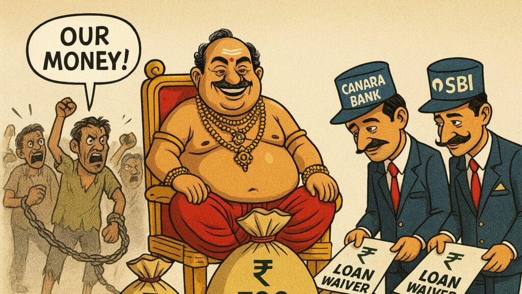A consortium of banks has written off loans worth Rs.5,700 crore taken by Gayatri Projects, a company owned by Congress leader and film producer T. Subbirami Reddy’s family. The move has drawn widespread criticism as an example of political clout in the banking sector.