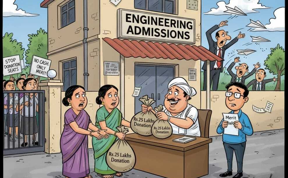 Engineering admissions in several private colleges across Hyderabad and neighbouring districts have come under sharp criticism. Allegations have surfaced that top institutions treated education as a commercial venture, selling management quota seats at exorbitant prices. Parents and student groups claim that seats were allotted not on merit but to those who could pay large sums in cash.