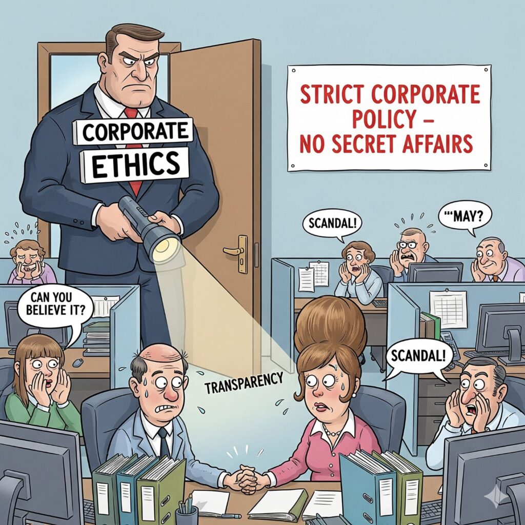In the United States, nearly 80 per cent of Fortune 500 companies have firm rules prohibiting undisclosed workplace relationships, particularly between managers and direct reports. Independent inquiry committees and human resource departments ensure that these rules are enforced. Companies treat disclosure as mandatory, while violations are dealt with through transfers, dismissals, or forced resignations.