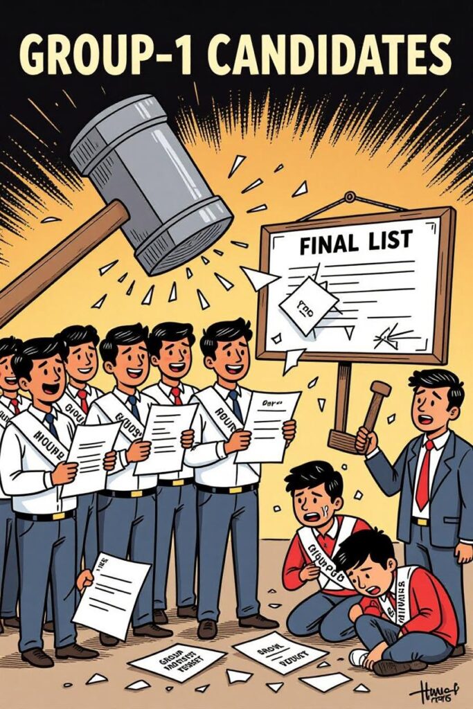 For over three years, thousands of Group-1 aspirants invested sleepless nights, relentless effort, and unyielding hope. Many saw their names on the final list and prepared for appointment letters. However, the High Court order cancelling the list has dealt a severe blow, directing fresh evaluation of answer sheets or a complete re-examination. The judgment has left aspirants in tears and despair.