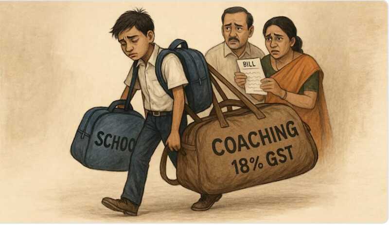 Middle-class families now face an added challenge as the government has imposed 18% Goods and Services Tax (GST) on private coaching centres and online tutorials. While schools and colleges remain outside the tax net, coaching institutions have not been classified as educational institutions, placing them within the ambit of GST. Parents fear this move will increase expenses at a time when competition for entrance examinations is already intense.