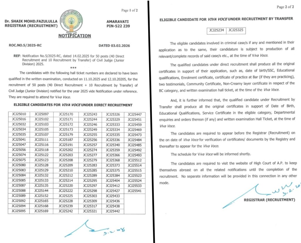 Therefore, candidates have been advised to regularly monitor the official website of the Andhra Pradesh High Court for further updates. No separate communication will be sent individually, and all information related to the recruitment process will be published only through official channels.