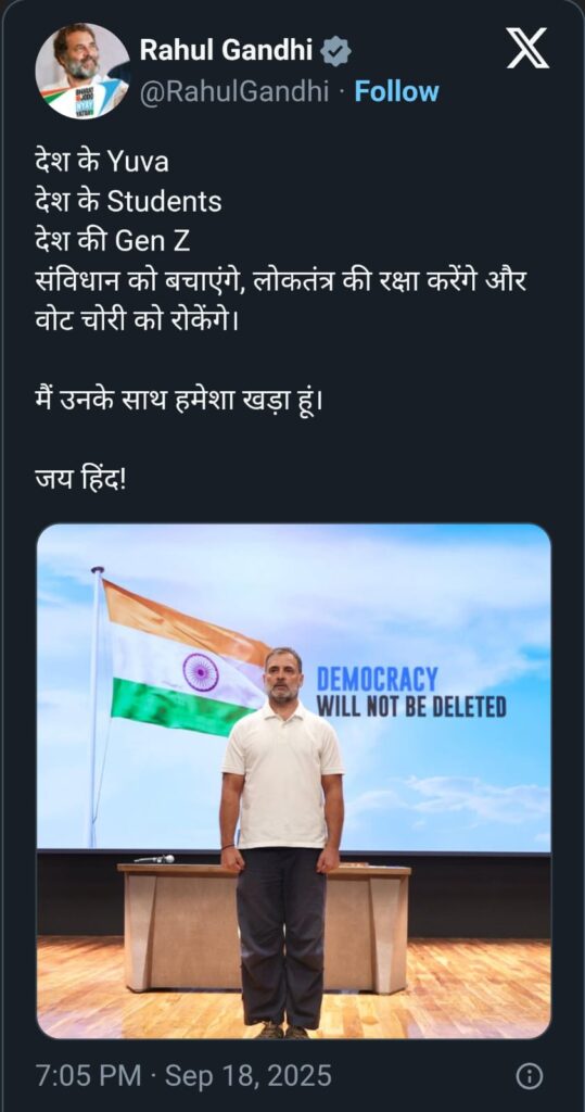 Despite the rebuttals, Rahul Gandhi’s tweet continues to draw interest. He stated that the youth, students, and the Gen Z generation would defend the Constitution and democracy and prevent electoral fraud. He added that he would always stand by them. Political observers are divided on whether this signals a new strategy or a rhetorical flourish.